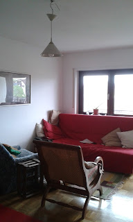 At the moment, more or less two weeks in, I'm started to feel that frustration a bit and so I'm glad I said it so often to so many people. I know in the end, it'll be worth it. And except for perhaps one or two days, I really have been doing a little bit every day. The kitchen was first up and the bedroom isn't too bad either. The main living room is not usuable but I'm going to clear a couple of things this afternoon so that at least I will have set up the table. For now, I've been using a stool at the nice wide window sill in my bedroom, or eating from a plate on my knee while sitting on my bed or, a couple of times, on a stool on the balcony. I do still have to find one or two boxes of kitchen stuff. Despite my attempts to move the boxes straight into the kitchen as they were arriving, it's so small that I quickly ran out of space. And typically, it's one of the boxes that was packed close to the end that is, presumably, right at the bottom of the pile. Which means I'm missing my big knives and my salad spinner. Sigh. I haven't really cooked a lot (it's far too hot for that) yet so I can manage with just the few small knives but I'm really missing my salad spinner. Tea towels just don't work as well (at least not when I'm doing it).